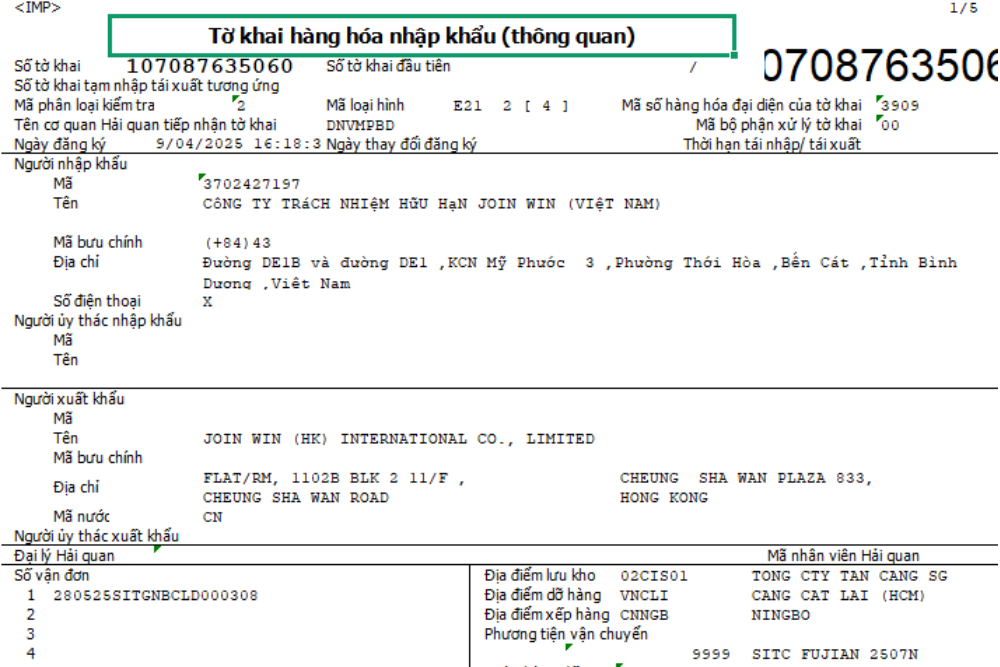 Sau khi xác nhận thuế đã nộp, hệ thống hải quan mới cho thông quan.